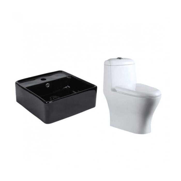 Conjunto para Banheiro Vaso Sanitário com Caixa Acoplada Monobloco e Cuba de Apoio Quadrada Adamas