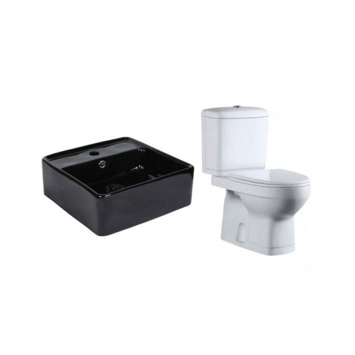 Conjunto para Banheiro Vaso Sanitário com Caixa Acoplada Monobloco e Cuba de Apoio Quadrada Adamas