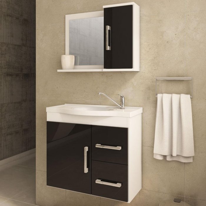 Conjunto para Banheiro Vix com Espelho 2 Gavetas e 2 Portas