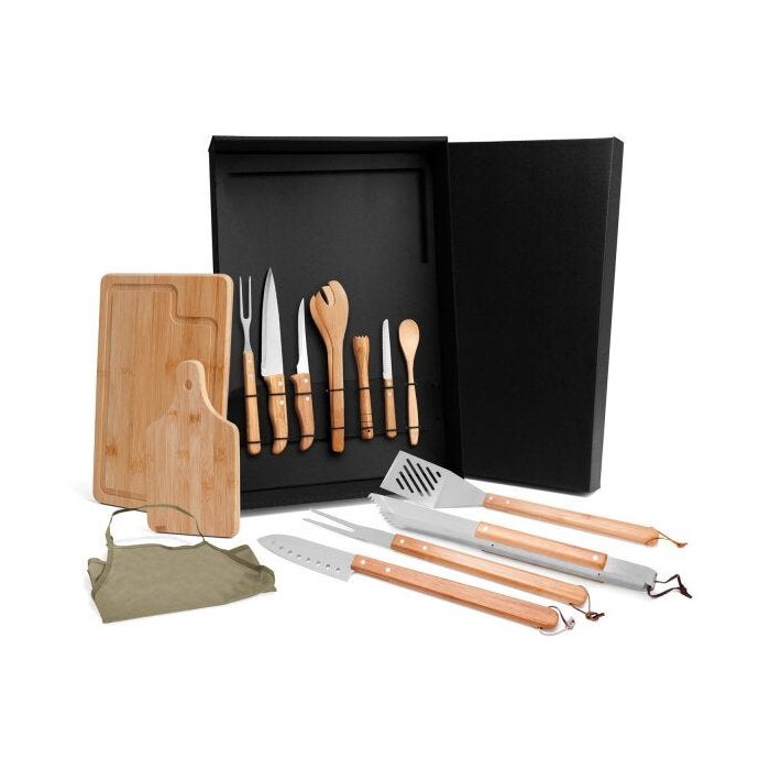 Conjunto para Churrasco e Caipirinha em Inox e Bambu 14 Peças - Welf verde