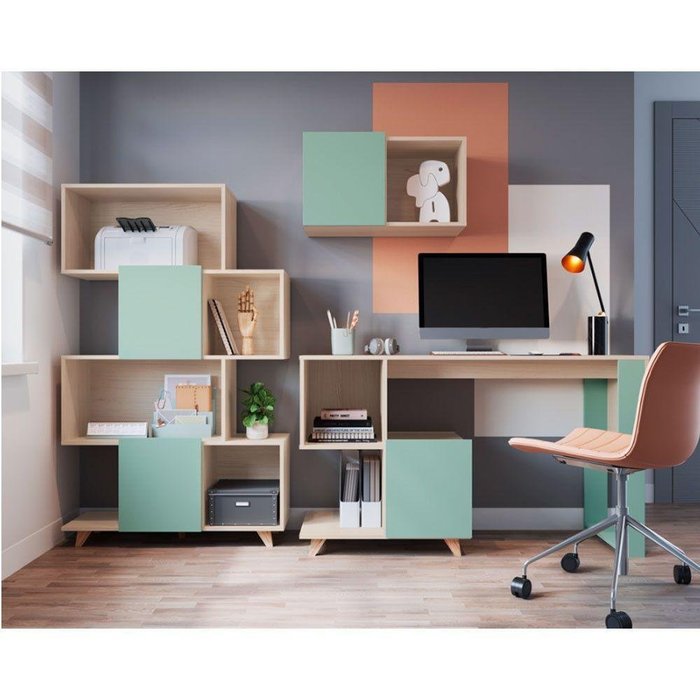 Conjunto Para Escritório 3 Peças Aurora Be Mobiliário Nature Com Verde