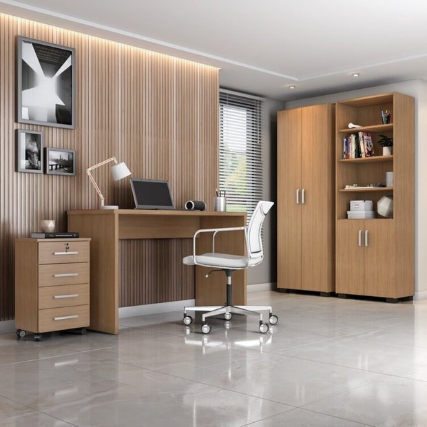 Conjunto de escrivaninha, armários e gaveteiro indicado para uso em sala, escritório, quarto, ou qualquer outro ambiente que você precise organizar e deixá-lo ainda mais elegante.
