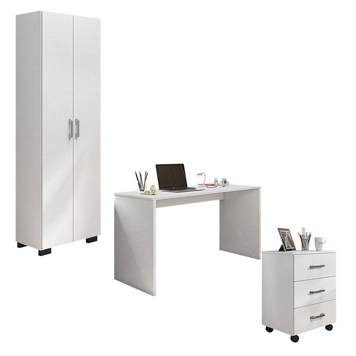 Conjunto para Escritório Gávea com Gaveteiro Petrópolis e Livreiro Office com Portas Grandes Branco Trama - Móveis Leão