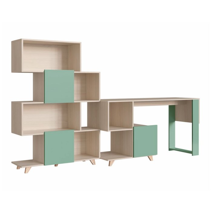 Conjunto Para Escritório Mesa Escrivaninha e Estante Aurora Be Mobiliário Nature com Verde