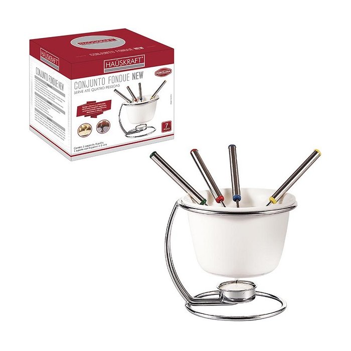 O Conjunto para fondue 8 peças Porcelana da Hauskraft é ideal para o preparo de fondue de carne, queijo ou chocolate.