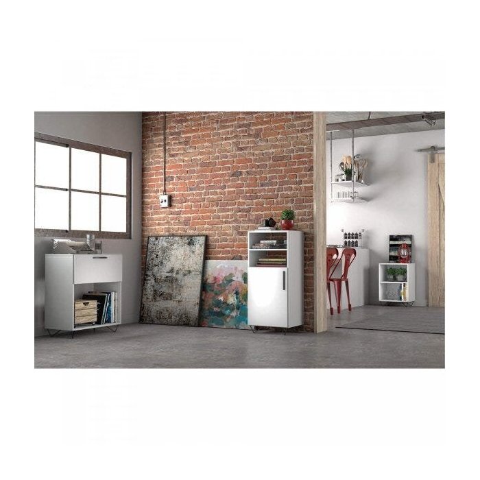 Combo produzido em MDP 15mm, com acabamento em BP fosco, puxador em ABS. Seus pés são em aramados com altura de 7,5cm. Tenha em seu ambiente produtos da linha Trama, que destaca-se pelos seus pés metálicos com uma combinação de sutileza e resistência através de um design singular.