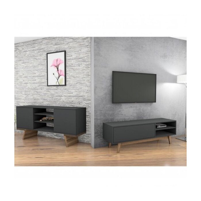 A Estilare tem o conjunto ideal para deixar a sua casa ainda mais linda e completa, com esse rack para TV até 48 Polegadas 1 Porta Basculante e Pés de Madeira e Buffet 2 Portas Retrô, você pode decorar e organizar com seus objetos e decorações preferidas. É produzido em melamina 15mm BP, possui tratamento contra cupins e é ecologicamente correto, o que garante um ótimo acabamento e durabilidade da peça.