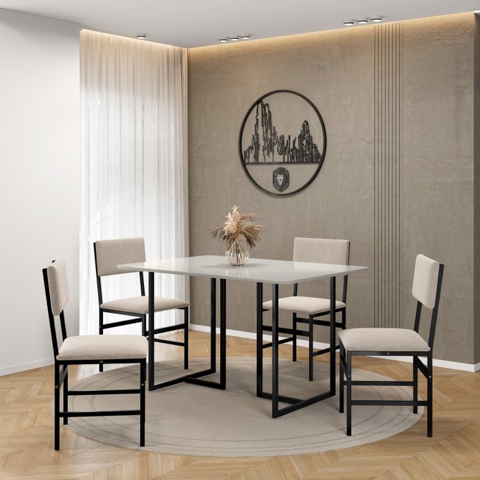 Conjunto para Sala de Jantar 118x80 Tampo Mdf com 4 Cadeiras Belle Preto/Off White/Bege