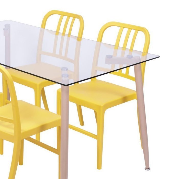 Conjunto para Sala de Jantar Mesa com Tampo de Vidro e 4 Cadeiras Plásticas sem Braço Amarelo