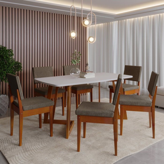 Conjunto para Sala de Jantar Tampo Oval 170cm com 6 Cadeiras Madeira Maciça Miami Caramelo/Off White/Grafite