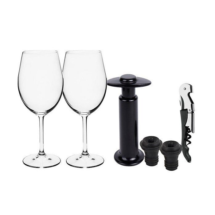 O conjunto Authentic Collection conta com um par de taças para vinho 450ml, 1 bomba a vácuo, 2 bicos para garrafa, 1 saca rolhas. Sirva com a melhor marca de taças.