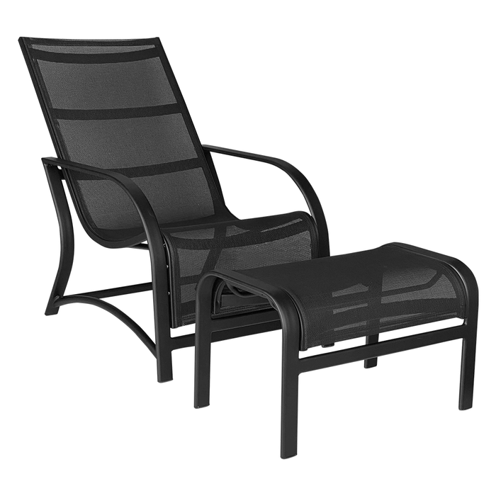 Conjunto Poltrona C/ Puff Francis Em Alumínio C/ Tela Sling Preta Móveis Campo Magro