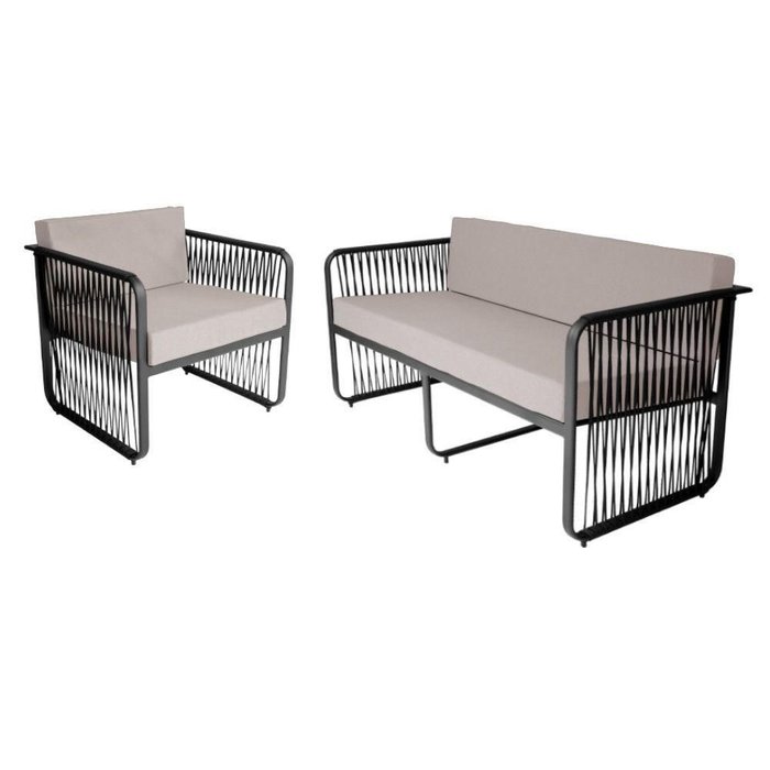Conjunto Poltrona e Namoradeira Corda Náutica Santiago Preto-branco