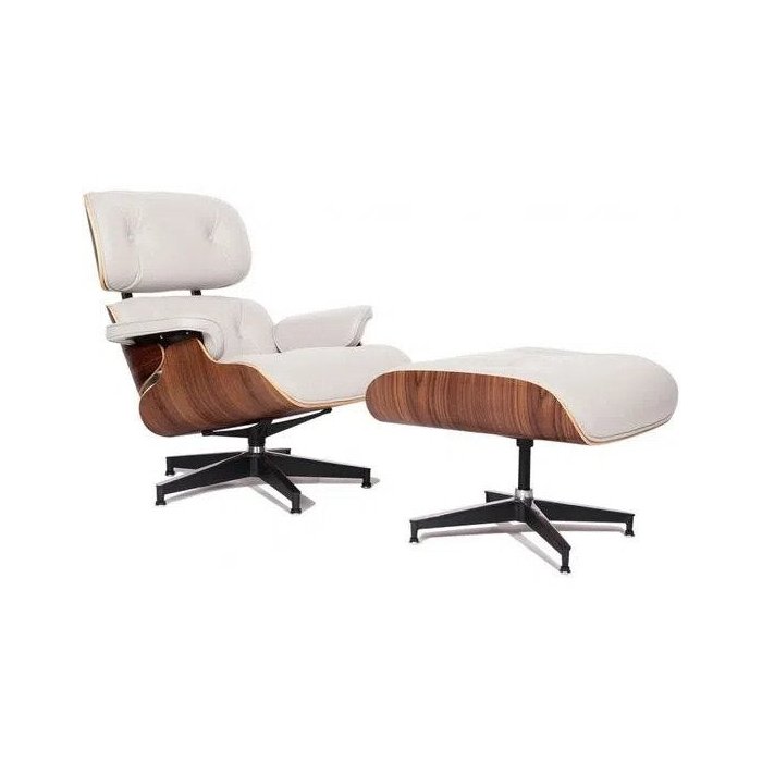 Conjunto Poltrona e Puff Charles Eames Tecido Sintético - Branco