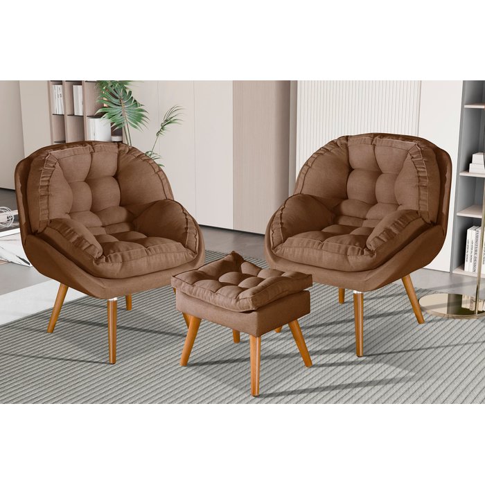 Contem no conjunto 2 poltronas Sênior + Puff Ambos no linho