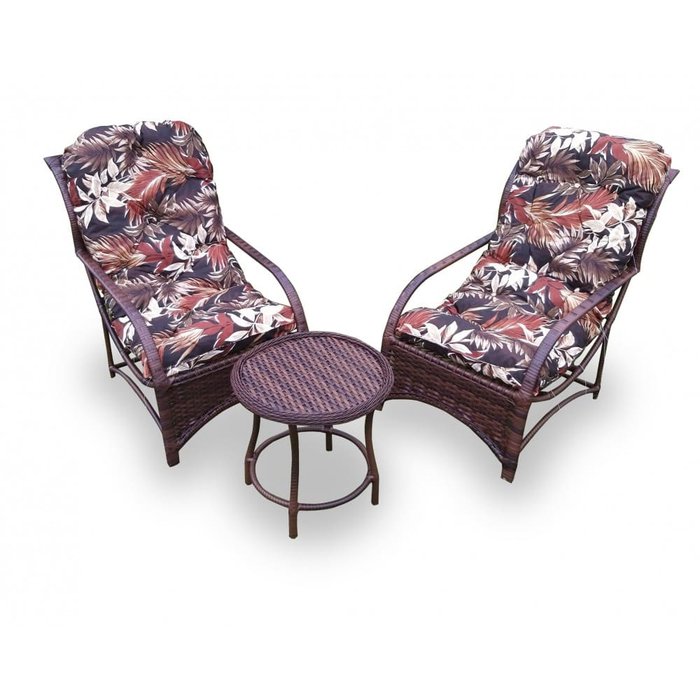 Conjunto Poltronas Espreguiçadeira Área Externa Fibra Sintética - 2 Poltronas e Mesa de Centro - Tecido Revieira Marrom