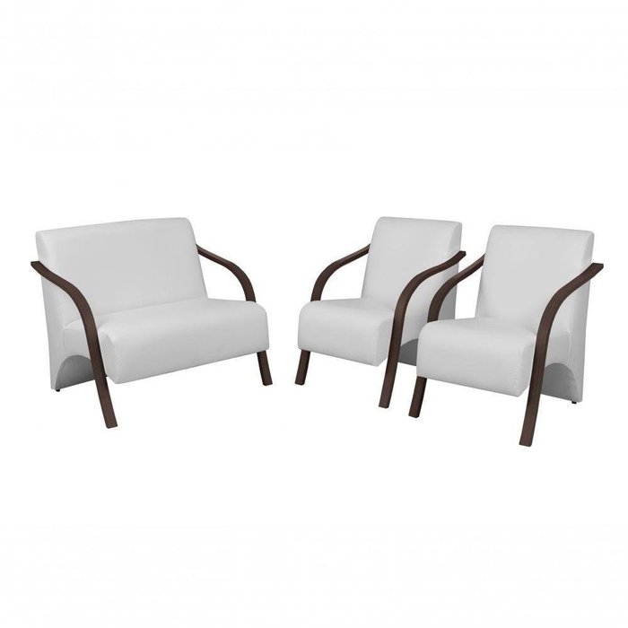 Conjunto Poltronas Vênus Pés Madeira Courino Branco Branco