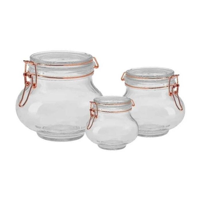 Conjunto pote mantimento hermético 3pçs vidro Rose Gold