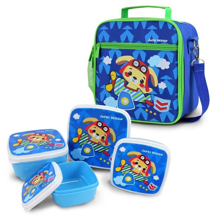 Conjunto Pote para Lanche de 4 Peças e Lancheira Térmica Filhotinhos Azul Escuro -Pote para Lanche de 4 Peças Filhotinhos O Pote para Lanche de 4 Peças da Jacki Design é ideal para levar o lanchinho dos pequenos para passeios ou escola. São 4 potes com estampa divertida e de tamanhos variados para levar diferentes lanches em cada pote! Sua filha vai amar ainda mais a hora do lanche! Produto livre de BPA. Pote GG: 500ML Pote G: 350ML
