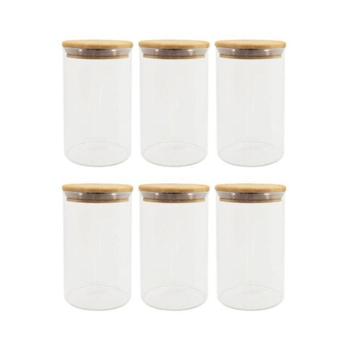 Conjunto Pote Vidro Hermético 200ml 6un Tampa Bambu Natural