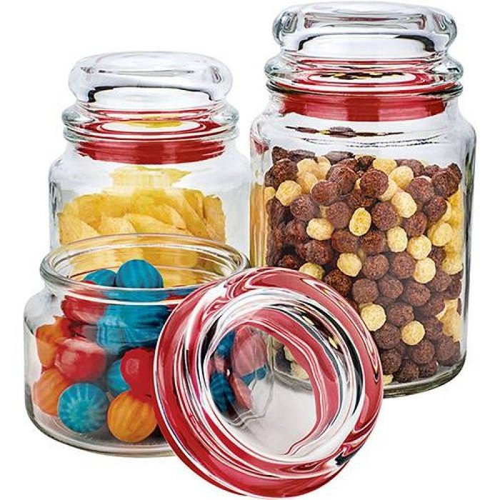 Conjunto. Potes De Vidro Multiuso 3 peças. Vermelho Vermelho