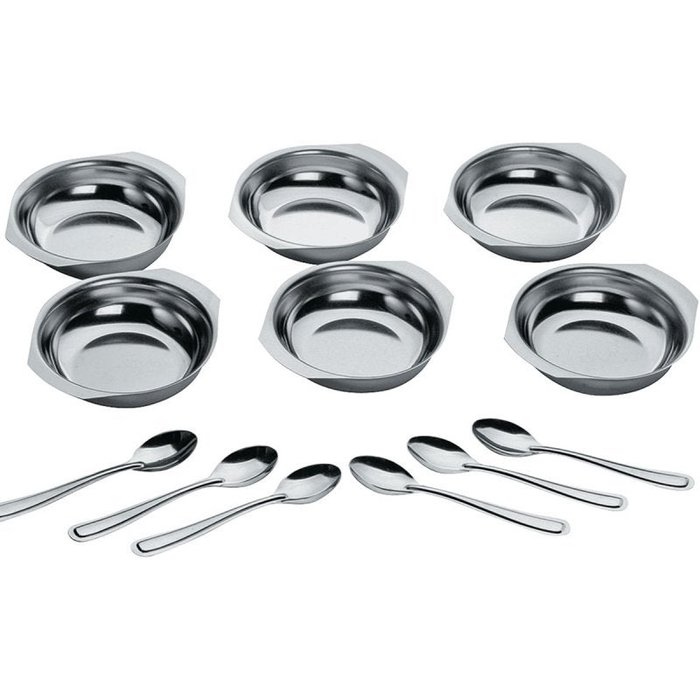 Este conjunto de sobremesa com 6 potes e 6 colheres é perfeito para servir a sobremesa do almoço de domingo para a família. Ideal para servir, doces, mousses, cremes, salada de frutas e sua sobremesa favorita. Com design clássico de muito bom gosto este conjunto é pura sofisticação.