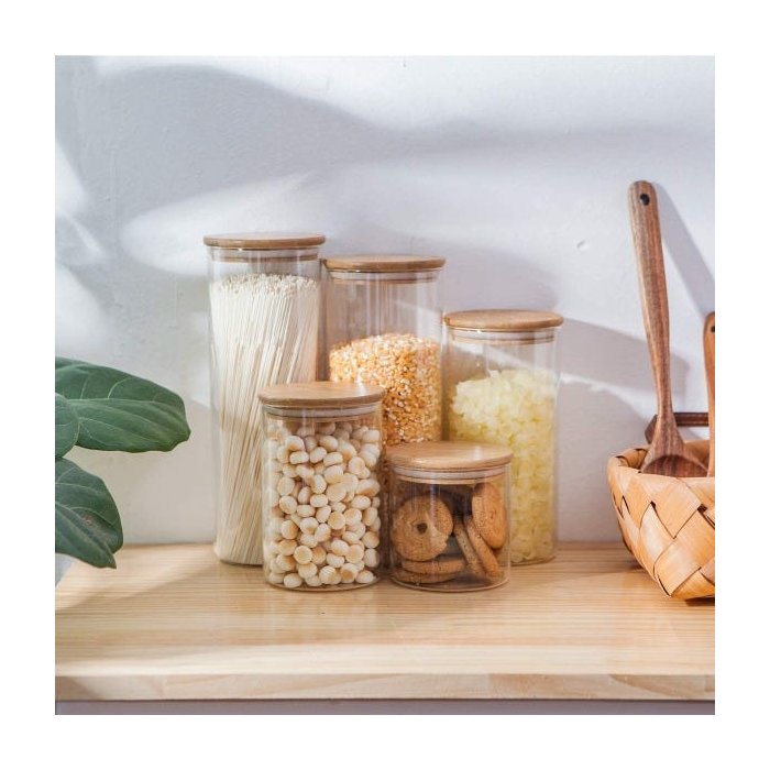 Conjunto Potes Vidro Hermético Tampa Bambu 450ml E 800ml 8un
