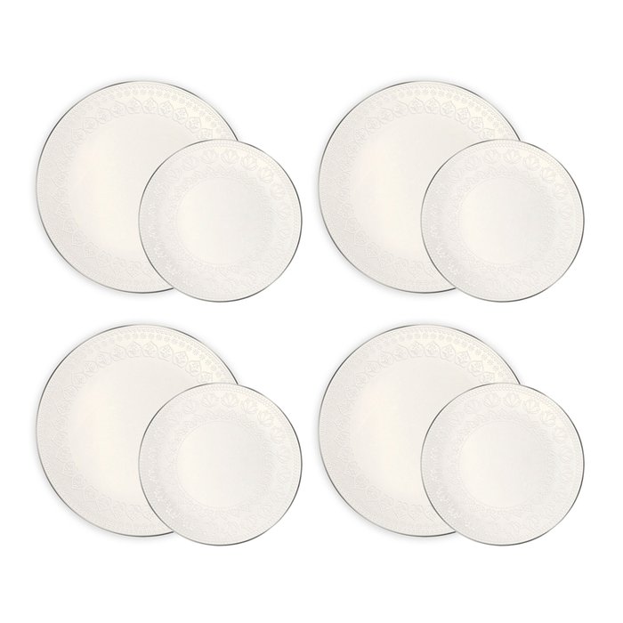 - Conteúdo: 8 peças (4 Pratos Sobremesa e 4 Pratos Raso)