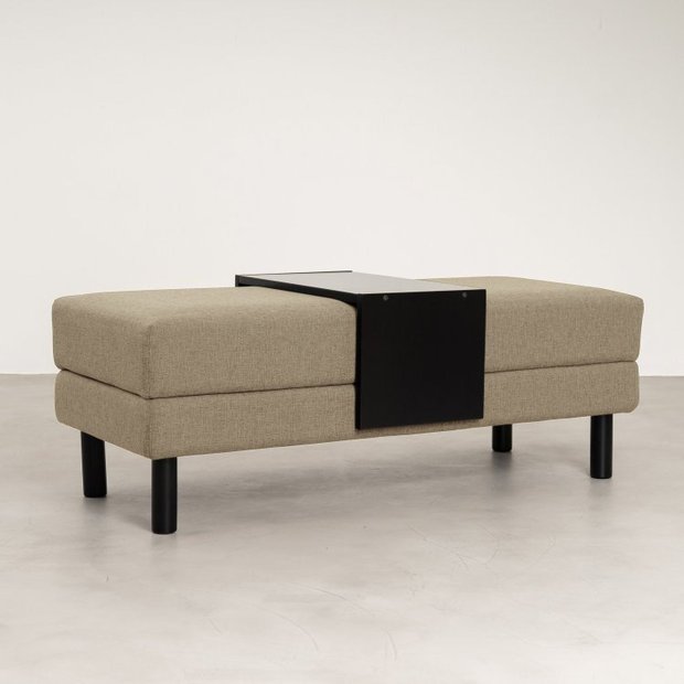 Conjunto Puff Baú 120cm e Bandeja Antúrio CabeCasa MadeiraOriginals Bege/Preto