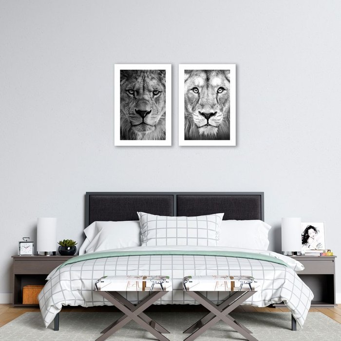 Conjunto Quadro Decorativo, Leao e Leoa 142x100 ( 2 Pecas 100x70 ), sem Moldura. em Mdf 6mm, para Sa