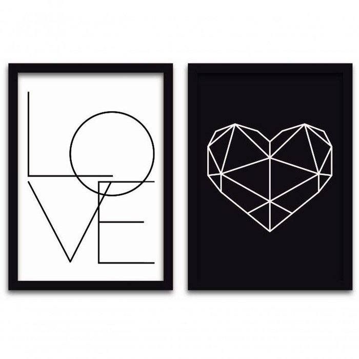 Conjunto Quadros 2pçs 40X60 Love 2 Moldura Preta Preta