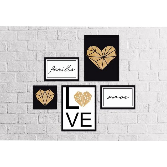 Conjunto Quadros Decorativos 5 peças Família Coração