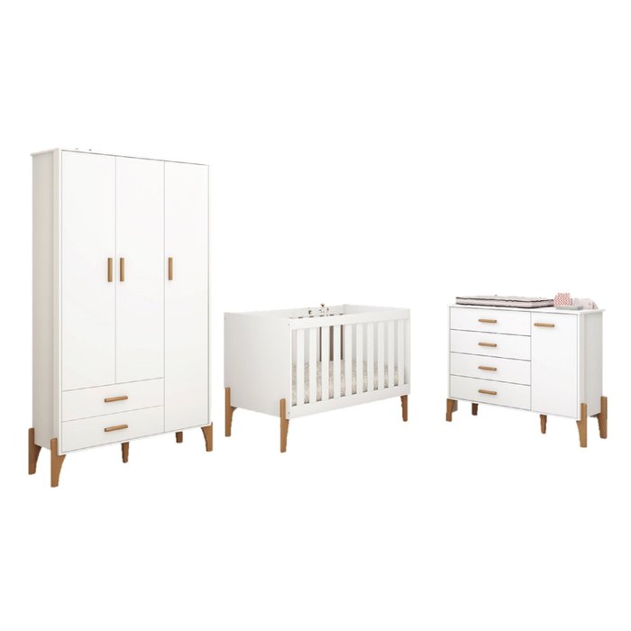 - Pés Estilo RetrôDimensões do produtoAltura: 93 cmLargura: 133 cmProfundidade: 74 cmEspaçamento entre as grades: 6 cm conforme especificado pelo InmetroCômoda Íris Infantil 4 Gavetas 1 Porta- 100% MDF- Pintura UV Acetinado de Alta Qualidade- Possui 1 porta com dobradiças metálicas- Possui 4 gavetas com corrediças telescópicas- Puxadores de madeira- Pés Estilo RetrôDimensões do produtoAltura: 95 cmLargura: 113 cmProfundidade: 41 cmGuarda Roupa Infantil Retrô 3 Portas 2 Gavetas- 100% MDF- Possui 3 portas com dobradiças metálicas- Possui 2 gavetas com corrediças metálicas- Possui cabideiro- Puxadores de Madeira- Pintura UV Acetinado de Alta Qualidade