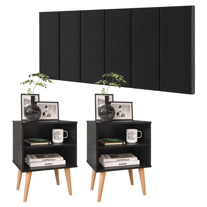 Conjunto Quarto Cabeceira Queen 1,60 Julia com 2 Mesas de Cabeceira RPM - Preto