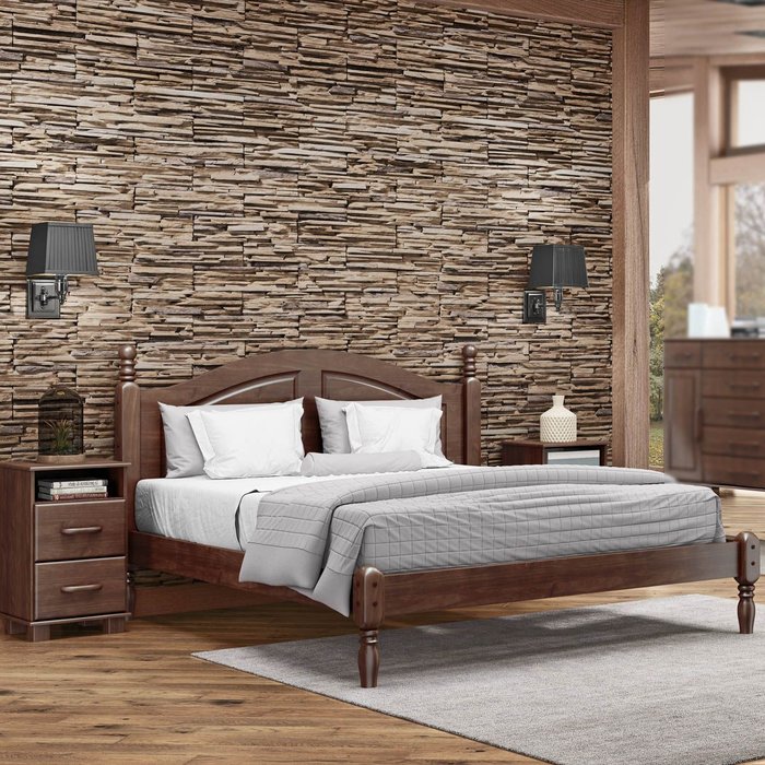 Conjunto Quarto: Cama Casal Queen, 2 Mesas de Cabeceiras 2 Gavetas Ouro Café Madeira Pinus - Finestra