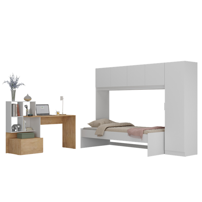 Conjunto Quarto Cama de Solteiro com Guarda-roupas e Escrivaninha Multimóveis Mp4123 Branco/rustic