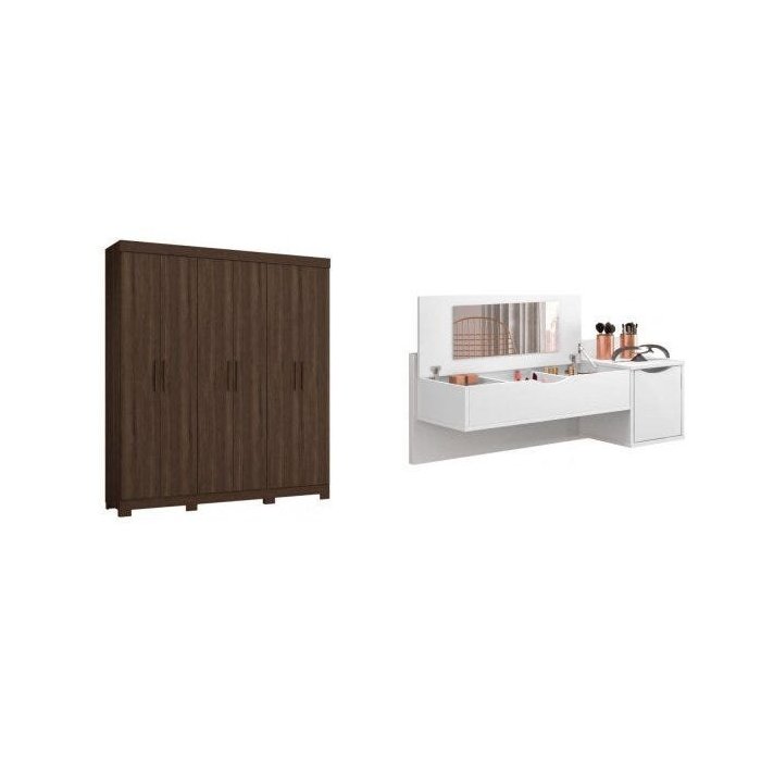 Conjunto Quarto Casal Guarda-Roupa Amarok e Penteadeira com Espelho Rouge Espresso Móveis Cedro/Branco Fosco