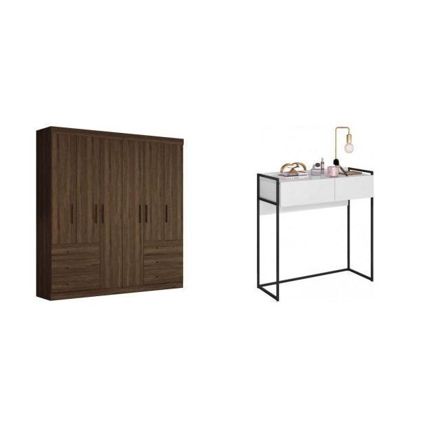 Conjunto Quarto Casal Guarda-Roupa Casal e Penteadeira Camarim com Espelho Beauty Espresso Móveis Cedro/Branco Fosco