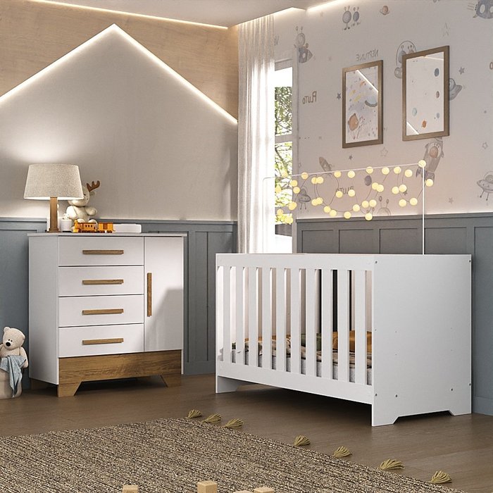 Conjunto Quarto de Bebê Colorir Berço e Cômoda Branco/nature - Moville