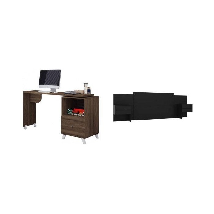 Conjunto Quarto de Casal Cabeceira Extensível e Escrivaninha 1 Gaveta Espresso Móveis Cedro/Preto Fosco Liso