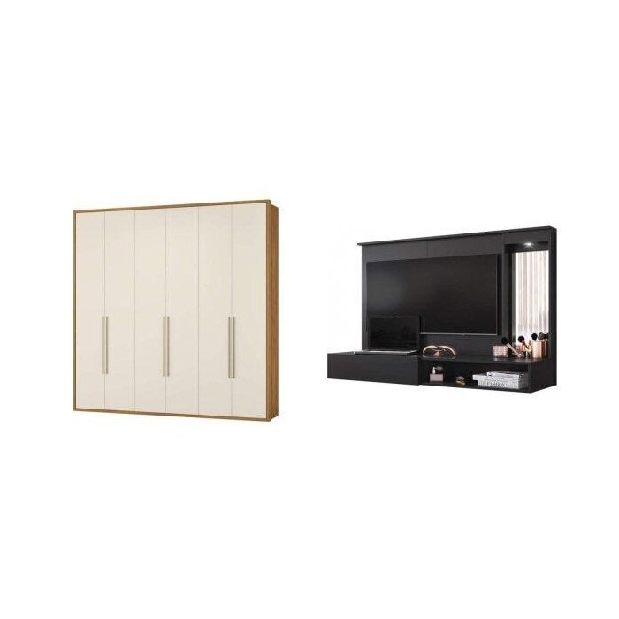 Conjunto Quarto de Casal Guarda-Roupa 6 Portas 4 Gavetas e Painel para TVs 43" Espresso Móveis