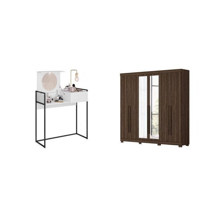 Conjunto Quarto de Casal Guarda-Roupa 6 Portas Belém e Penteadeira Camarim Beauty Espresso Móveis Cedro/Branco Fosco