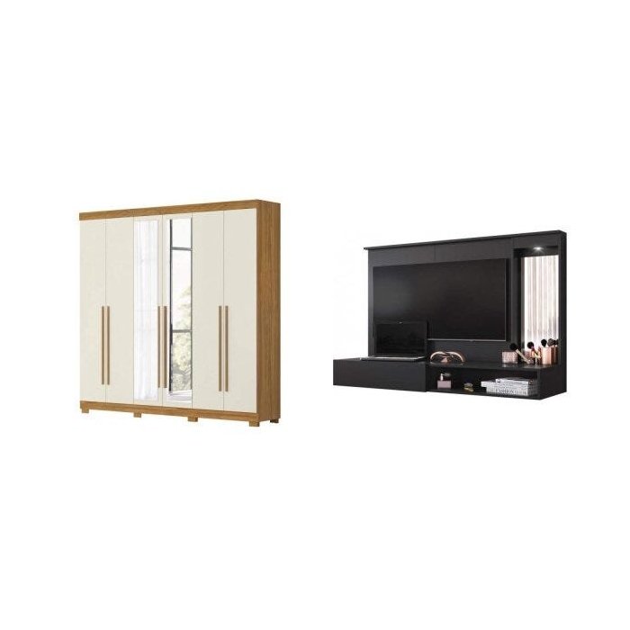 Painel Suspenso para TVs 43 Polegadas Multifincional Single Espresso Móveis O Painel Single, famoso e desejado pela sua Multifuncionalidade. Um produto 3 em 1 pensado para toda família. Painel de TV de até 43 polegadas, Bancada de estudos com gaveta e Camarim com spot de led. Ideal para deixar o ambiente ainda mais bonito e atrativo. Guarda Roupa de Casal com Espelho 6 Portas 4 Gavetas Belém Albatroz Móveis O Guarda-roupa de casal Belém foi feito pra quem almeja por amplitude, praticidade e beleza. Com 4 gavetas internas, espaço para cabideiros, maleiro e prateleiras espaçosas, permite uma melhor organização do quarto, deixando tudo em seu lugar. Sem falar nos puxadores alongados em MDF que além de compor o design do produto irão dar um charme na composição de qualquer ambiente.