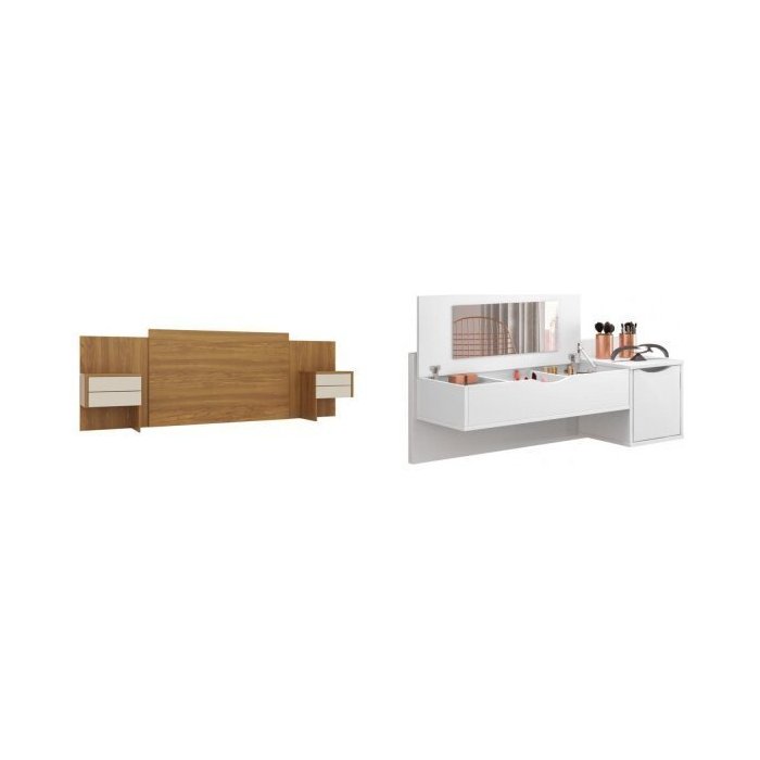 Conjunto Quarto de Casal Penteadeira com Espelho e Cabeceira Casal/King Extensível Espresso Móveis