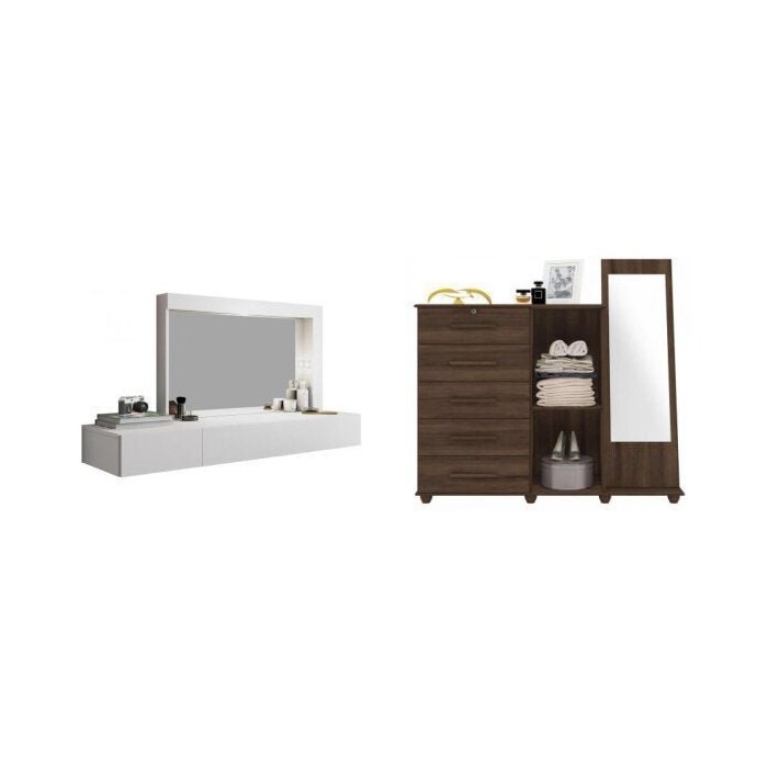 Conjunto Quarto de Solteiro Cômoda Camarim Suspenso c/ Espelho 2 Gavetas Inspiração Espresso Móveis