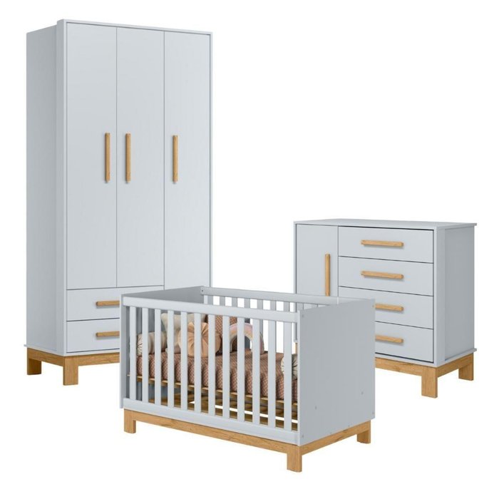 Esse conjunto de quarto infantil completo é perfeito para você que procura praticidade e segurança na hora de montar o quarto do seu bebê A cômoda é feita em MDP 15mm, possuindo quatro gavetas com corrediças metálicas, uma porta e seis prateleiras com amplo espaço para organizar sapatos e roupas. O Guarda Roupa é feito em MDP 15mm,possui duas gavetas com corrediças metálicas e três portas garantindo um espaço amplo para acomodar os seus pertences e roupas. O berço é feito em MDP 15mm, ele pode ser montado como mini cama, para acompanhar o crescimento da criança. Não acompanha colchão (comporta colchão de 10x130x70). Dimensões do Produto: Altura: 190 cm Largura: 94 cm Comprimento: 47 cm Informações do Guarda Roupa: Cor: Cinza Acetinado Gavetas: Sim (2) Corrediças metálicas Prateleiras: Sim (6) Pés: Sim (4) MDF Puxadores: Sim (5) MDF Portas: Sim (3) Material: MDP Informações do Berço: Altura: 83 cm Largura: 74 cm Comprimento: 133 cm Informações do Berço: Cor: Cinza Acetinado Material: MDP 15 mm Pés em MDF de 25mm Peso suportado: 40 Kg Possui a opção de mini cama Acompanha colchão: Não Acompanha suporte para mosquiteiro Suporta Colchão de Até 10x130x70 cm Informações da Cômoda: Altura: 84 cm Largura: 94 cm Comprimento: 42 cm Informações Da Cômoda: Cor: Cinza Acetinado Gavetas: Sim (4) corrediças metálicas. Pés: Sim (4) MDF Puxadores: Sim (5) MDF Porta: Sim (1) Prateleira: Sim (2) Material: MDP 15/12mm Itens Inclusos: 1 Cômoda 1 Guarda Roupa 1 Berço Manual de Montagem Kit completo para montagem e manual de instruções Garantia: 3 meses contra defeito de fabricação Informações Adicionais: - Fotos meramente ilustrativas do produto no ambiente. - Os objetos que ambientam as fotos não acompanham o produto; - Verificar descrição e tamanho do produto antes da compra. - Avaliar a mercadoria no ato do recebimento e recuse em caso de divergência ou avarias. - Mantenha as informações de contato e endereço de entrega atualizados para entrarmos em contato caso necessário. - Limpar com flanela ou pano macio seco, não utilizar produtos abrasivos, desengordurantes, álcool ou solvente. Não expor o produto diretamente à luz solar e à umidade. * Sugerimos a contratação de um montador profissional para a montagem do produto. Não nos responsabilizamos por avarias causadas no ato da montagem. * Não nos responsabilizamos pela montagem e desmontagem do produto no ato da entrega e devolução, assim como os custos gerados nestas situações. * A transportadora entregará o produto no andar térreo do endereço de entrega. * Não nos responsabilizamos por subir escadas, corredores e elevadores ou transporte por guincho em apartamen COR PREDOMINANTE: Cinza | MATERIAL PRINCIPAL: MDP | GÊNERO (INFANTIL): Unissex | ALTURA DO PRODUTO COM EMBALAGEM (CM): 43,8 | LARGURA PRODUTO COM EMBALAGEM (CM): 77,2 | COMPRIMENTO PRODUTO COM EMBALAGEM (CM): 175,7 | PESO PRODUTO COM EMBALAGEM (KG): 134,8 | TEMPO DE ENTREGA (DIAS): 3 | PESO DO PRODUTO (KG): 134,8 | DESCRIÇÃO DO TAMANHO: 190x94x47 cm | CORES DO PRODUTO (FILTRO DE CORES): Cinza | MATERIAL PARA FILTRO: MDP | ESTADO DE ORIGEM: PR | ALTURA DO PRODUTO (CM): 190 | LARGURA DO PRODUTO (CM): 94 | COMPRIMENTO DO PRODUTO (CM): 47 | CONTEÚDO DA EMBALAGEM: 1 Berço, 1 Cômoda e 1 Guarda Roupa | INSTRUÇÕES/CUIDADOS: Limpar com flanela ou pano macio seco, não utilizar produtos abrasivos | PRODUTO PRECISA DE MONTAGEM?: Sugerimos a contratação de um montador profissional para a montagem do produto. Não nos responsabilizamos por avarias causadas no ato da montagem. | PRODUTO: Berço, Cômoda e Guarda Roupa