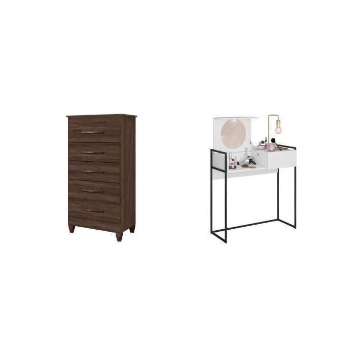 Conjunto Quarto Solteiro Cômoda Artebras e Penteadeira com Espelho Beauty Espresso Móveis Cedro/Branco Fosco