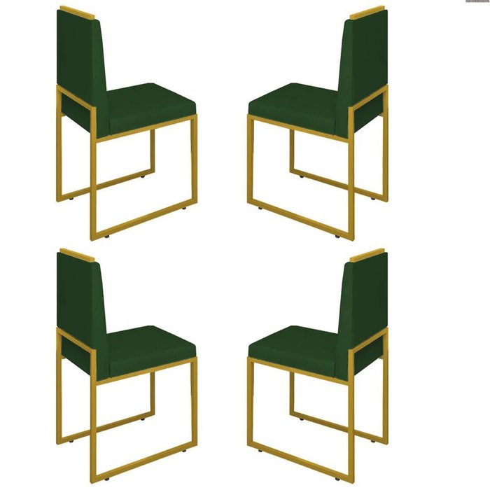 Conjunto Quatro Cadeiras Sala Jantar Barcelona Base Dourado:verde verde