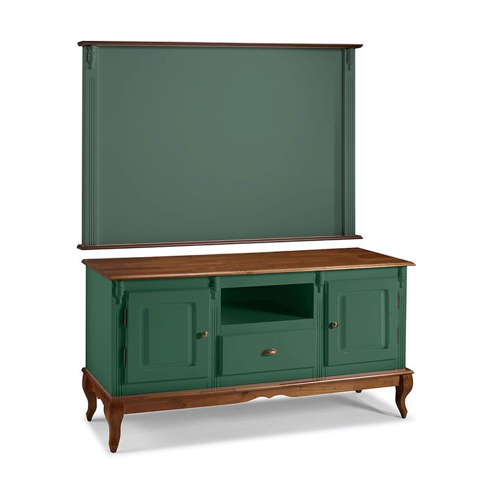 Conjunto Rack 60811m + Painel 50505 para Sala Pés Luiz Xv 1 Gaveta 2 Portas - Verde Musgo/imbuia