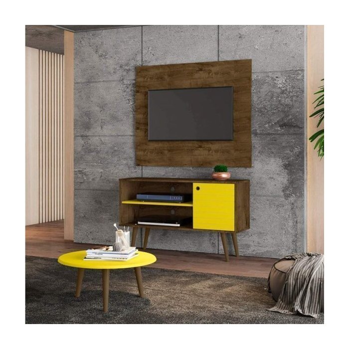 Conjunto Rack com Painel e Mesa de Centro para TV até 42 Polegadas Jade Móveis Bechara Madeira Rústica/Amarelo